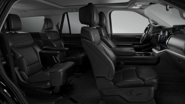Includes the following features: Driver's Package (Radio: B&O Play Unleashed and SiriusXM with 360L), Equipment Group 600A Standard Package (2nd Row Power-Folding Captain's Chairs, 3.73 Axle Ratio, BlueCruise Equipped (90-Day Trial), Ford Digital Experience, Heated and Ventilated Leather Front Captain's Chairs, Power Tilt/Telescopic Steering Wheel with Memory, Radio: B&O Sound System by Bang and Olufsen, and Wheels: 20 x 8.5 Ebony Bright Machined Aluminum), Ford Connectivity Package (1-Year Included), Stealth Appearance Package (Black Belt Molding, Black Expedition Lettering on Hood, Black Headlamp Bezel with Ebony Trim Applique, Black Platinum Badge on Tailgate, Black Roof Rails, Carbon Black Front Bumper/Fascia, Rear Side Windows Laminated Glass, and Signature Grille Lighting), Stealth Performance Package (Black Onyx Painted Power Deployable Running Boards, Engine Sound Enhancer, High Flow Exhaust System, and Wheels: 24 x 9.5 Ebony Painted Aluminum), 10 Speakers, 3rd row seats: split-bench, 4-Wheel Disc Brakes, ABS brakes, Air Conditioning, Alloy wheels, AM/FM radio: SiriusXM with 360L, Apple CarPlay/Android Auto, Auto High-beam Headlights, Auto-dimming door mirrors, Auto-dimming Rear-View mirror, Automatic temperature control, Brake assist, Bumpers: body-color, Compass, Delay-off headlights, Driver door bin, Driver vanity mirror, Dual front impact airbags, Dual front side impact airbags, Electronic Stability Control, Emergency communication system: 911 Assist, Exterior Parking Camera Rear, Four wheel independent suspension, Front anti-roll bar, Front Bucket Seats, Front Center Armrest, Front dual zone A/C, Front reading lights, Fully automatic headlights, Garage door transmitter, Genuine wood dashboard insert, Genuine wood door panel insert, Heated door mirrors, Heated front seats, Heated rear seats, Heated steering wheel, Illuminated entry, Intersection Assist, Leather steering wheel, Low tire pressure warning, Memory seat, Navigation System, Occupant sensing airbag, Outside temperature display, Overhead airbag, Overhead console, Panic alarm, Passenger door bin, Passenger vanity mirror, Power door mirrors, Power driver seat, Power moonroof: Vista Roof, Power passenger seat, Power steering, Power windows, Radio data system, Rain sensing wipers, Rear air conditioning, Rear anti-roll bar, Rear reading lights, Rear window defroster, Rear window wiper, Reclining 3rd row seat, Remote keyless entry, Security system, Speed control, Speed-sensing steering, Speed-Sensitive Wipers, Split folding rear seat, Spoiler, Steering wheel memory, Steering wheel mounted audio controls, Tachometer, Telescoping steering wheel, Tilt steering wheel, Traction control, Trip computer, Turn signal indicator mirrors, Variably intermittent wipers, Ventilated front seats, Voltmeter, and Wheels: 22 x 9.0 Ebony Bright Machined Face Aluminum.